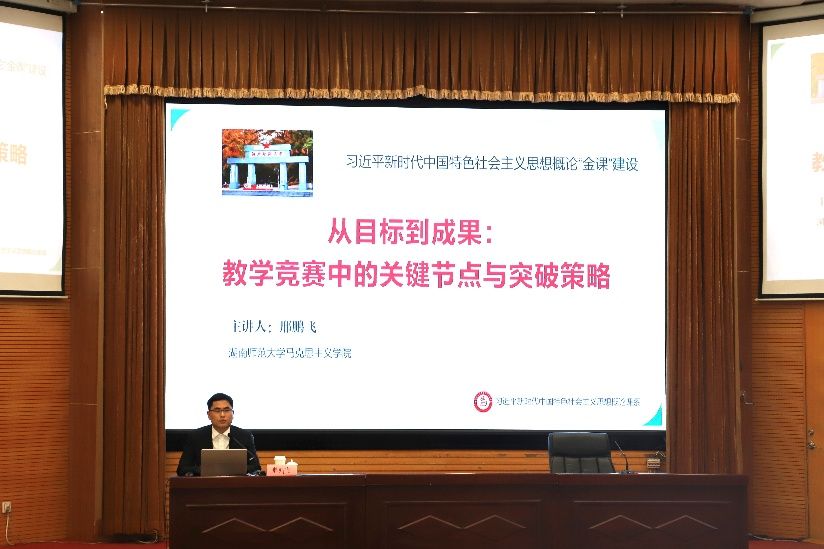 在专题辅导过程中,邢鹏飞教授以“习近平新时代中国特色社会主义思想概论”课程教学为依托,紧密结合自身的参赛经历,详细阐述了全国高校青年教师教学竞赛的基本流程、关键环节与重点难点。与此同时,他聚焦相关问题,提出了一系列有针对性的实践策略,帮助广大思政教师进一步优化课堂设计,积极打造思政“金课”。
