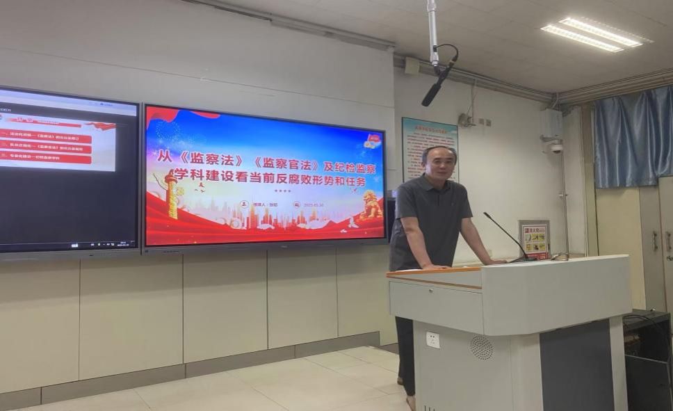 张韬以当前反腐败形势和任务入题,首先以《监察法》的制定过程系统梳理了我国监察法治化的进程。他指出,《监察法》是贯彻落实以习近平同志为核心的党中央关于深化国家监察体制改革决策部署的重大举措,是坚持和加强党对反腐败工作的领导,构建集中统一、权威高效的国家监察体系的必然要求。其次,张韬基于《监察官法》科学分析我国监察干部队伍建设的现状,分析了当前纪检监察学科建设未来前景。授课过程中,张韬用创新的理论、严谨的逻辑、生动的语言、鲜活的事例,为学生们带来一堂富有思想性、理论性和亲和力的“大思政课”。