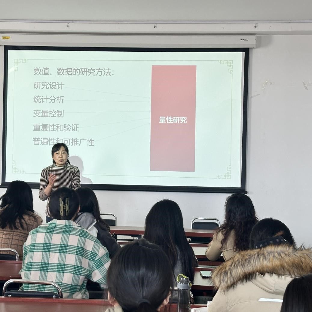 在讲座中,白洁老师以人格测试的心理量表为例,论述了量性研究和质性研究的内涵及区别,强调要坚持问题导向意识,带着问题去研究。其次,白洁老师详细介绍了论文问卷的类型、设计原则以及常见的注意事项等,引导师生了解问卷编制的重要性和方法。此外,她以具体的问卷为例,分享了自己在问卷设计方面的经验和技巧,为大家提供了实用的指导和建议。最后,白洁老师以数据分析及解释为主线进行讲解,详细介绍了数值和数据的处理和分析,并着重强调数据和样本量的增强能够提高研究的可信度。在此次活动中,学院师生积极参与互动环节,现场充满了思想碰撞的火花,在引发大家深度思考的同时,也使得参会师生对问卷编制有了更为系统全面的认识。