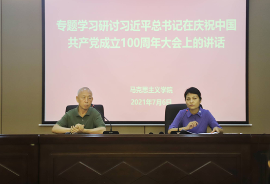 7月6日下午,必威西汉姆联在博学楼二层会议室专题学习习近平总书记在庆祝中国共产党成立100周年大会上的讲话精神,学院院长张二芳作学习辅导,学院全体教职工参加学习。活动由学院党委书记王贵明主持。