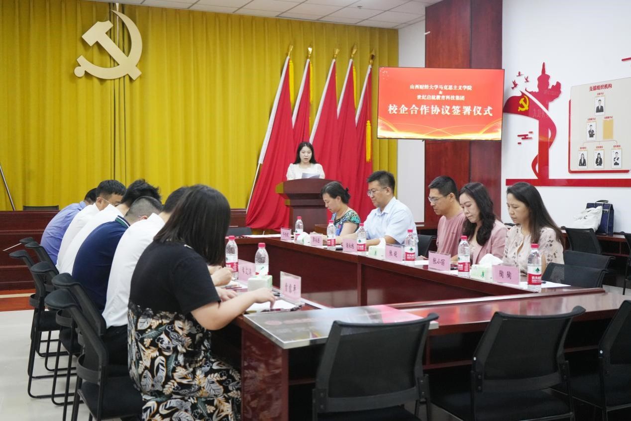 2023年7月6日在世纪启航教育科技集团党支部,山西省马克思主义理论教育基地携手太原市职业教育研究会签署战略合作协议,旨在进一步完善校企合作育人机制,开创党员教育培训新模式。