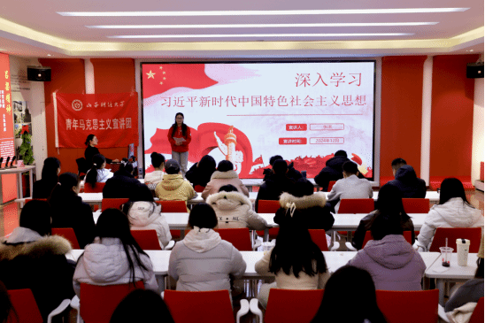 初心不改,步履不停。本次开班仪式结束之后,习近平新时代中国特色社会主义思想青年研究会社团开展了理论学习活动,由青年马克思主义宣讲团成员张琪同学为学员们作以《深入学习习近平新时代中国特色社会主义思想》为主题的宣讲。通过此次宣讲活动,学员们更加深刻地认识和理解到“青马班”开展的重要意义,大家纷纷表示,青年一代应该坚持向上向善的价值追求,展现朝气蓬勃的精神风貌,在实践中悟真知、强本领,为国家发展进步贡献青年之力。