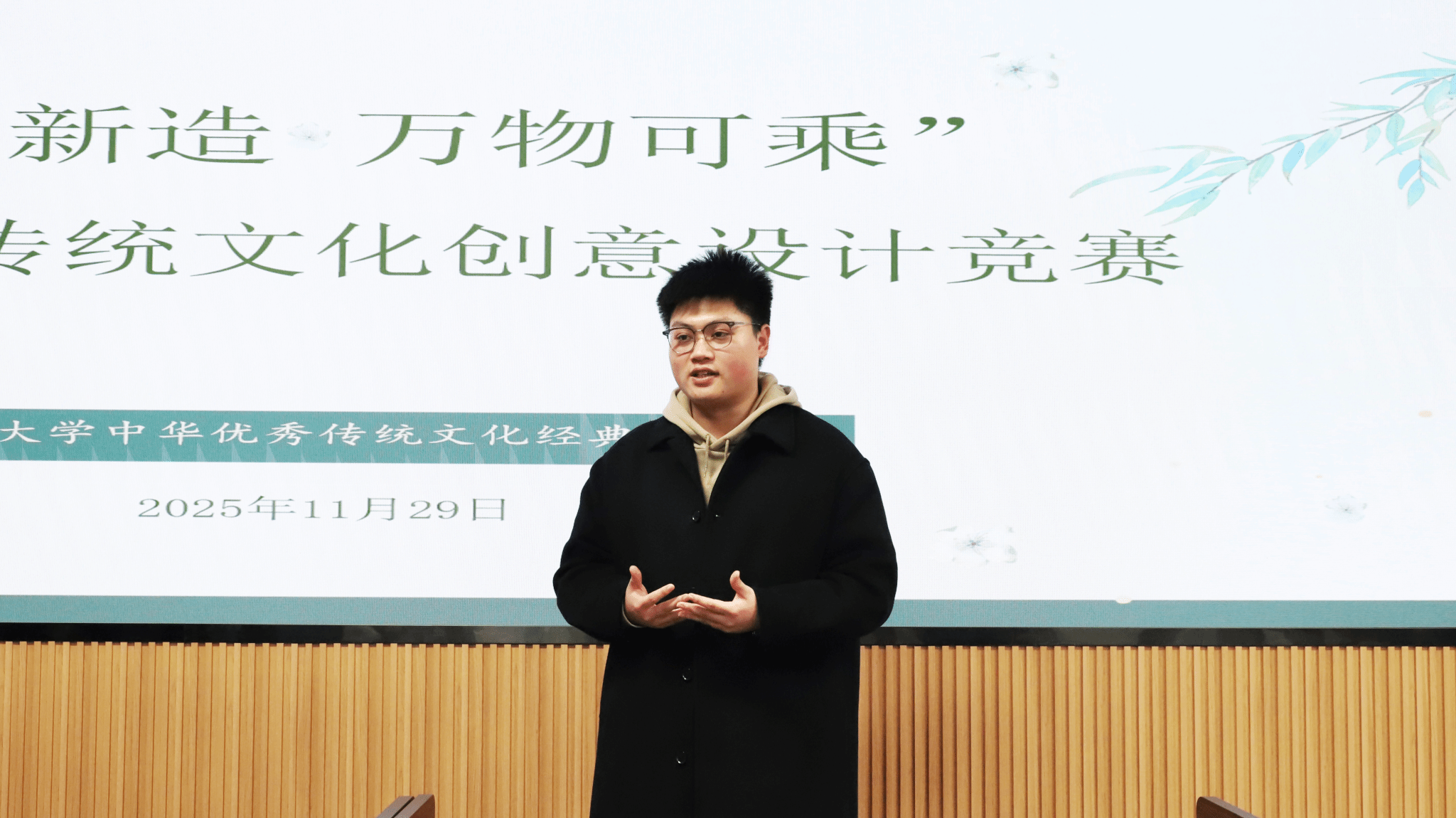 为深入学习贯彻习近平文化思想,推动中华优秀传统文化在校园内实现创造性转化与创新性发展,引导青年学生厚植文化自信、传承非遗文脉,11月29日,“非遗新造·万物可乘”中华优秀传统文化创意设计竞赛在必威西汉姆联会议室顺利举办。中华优秀传统文化经典研习社指导教师任智萍、赵海燕老师和学生社团联合会主席马凯担任评委,13组优秀选手同台竞技,用创意为非遗注入时代活力。