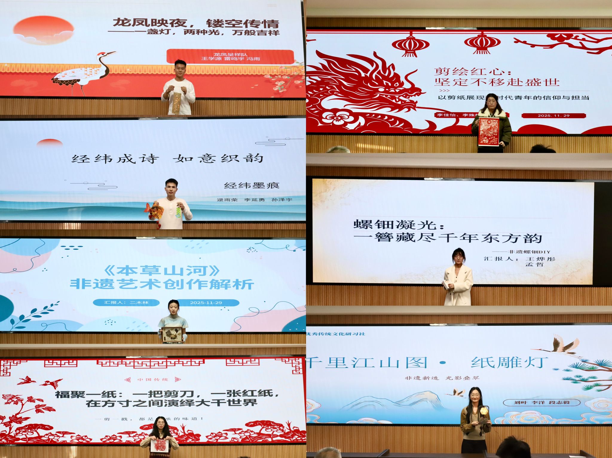 此次大赛的成功举办,是中华优秀传统文化经典研习社践行文化传承使命、推进非遗活化创新的生动实践,更是引导青年学生坚定文化自信、担当文化使命的具体举措。未来,中华优秀传统文化经典研习社将持续深耕非遗文化传承与创新发展,常态化开展此类传统文化创意实践活动,不断拓展活动形式、丰富活动内涵,搭建好青年学生与传统文化对话的平台,推动中华优秀传统文化在校园落地生根、焕发光彩。( 姚鹏宁供稿 刘星星 赵媛媛供图)