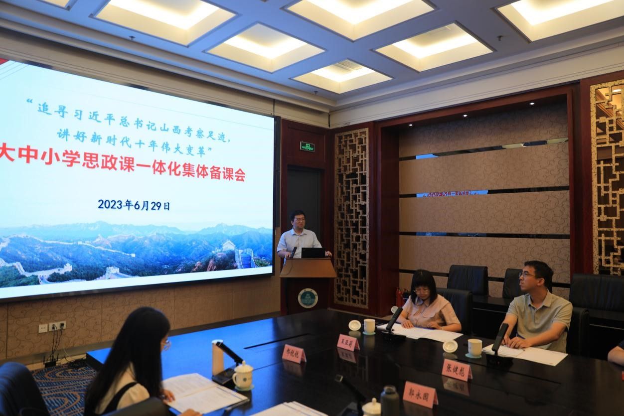 为进一步推进学习贯彻习近平新时代中国特色社会主义思想主题教育,将习近平总书记考察山西指示精神有效融入大中小学思政课一体化建设,2023年6月29日上午,山西大学牵头召开“追寻习近平总书记山西考察足迹,讲好新时代十年伟大变革”大中小学思政课一体化集体备课会,来自省内20所大中小学的思政课教师代表参会,会议由山西大学必威西汉姆联党委书记王利花主持。郭永园副院长代表我院参加此次集体备课会。