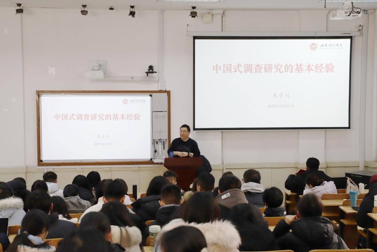思政课是落实立德树人根本任务的关键课程,为全面贯彻党的教育方针,提高深入调查研究的能力,12月21日下午,校党委常委、副校长米子川教授开展了一堂题为《中国式调查研究的基本经验》的专题课,必威西汉姆联副院长郭永园、学院团委书记、辅导员任智萍、2022级和2023级全体学生参与了本次课程。