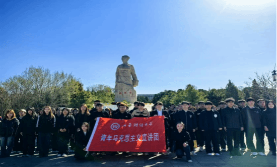 一草一木一忠魂,一山一石一丰碑。活动现场,沿着主轴线133级台阶,全体成员怀着崇敬之情缓缓步入高君宇纪念广场,青山围抱,肃穆庄严,在高君宇烈士雕塑前,一场跨越时空的“青春对话”缓缓开场。“我是宝剑,我是火花。我愿生如闪电之耀亮,我愿死如彗星之迅忽……”宣讲团成员宋春妮采取理论宣讲的形式,为山西省政法管理干部学院80余名师生生动还原了山西党团创始人高君宇的革命事迹。来自政法管理干部学院的同学们认真聆听,他们被革命先辈的英勇事迹深深打动,大家纷纷表示,通过“理论宣讲+实地参观”的形式,深刻体会到当今美好生活的来之不易,作为新时代青年,更应当积极为讲好山西故事、中国故事作出贡献。