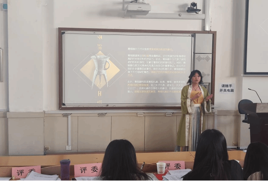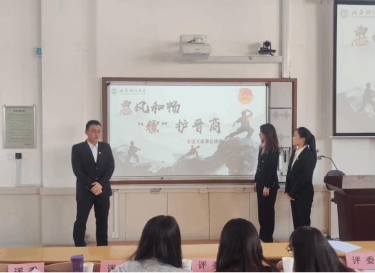 比赛中,参赛选手们依次上台,配合视频、道具进行讲解,展示了他们对“非遗”文化的理解与热爱,宣讲图文与声情并茂,达到情意交融、寓知性、趣味性、艺术性于一体。一个个承载着时间记忆的非物质文化遗产展现在大家面前:走进“吉光片羽,鎏金闪烁的平遥推光漆器”,感受推光漆器的雅致美韵;走进“浮雕丝韵,织彩成诗的上党堆锦”,感受一场瑰丽之旅;走进“千年沉淀,人文古韵的多彩山西”,感受晋北、晋中、晋南的文化印记……参赛选手们动人心弦的演讲,让一个个非物质文化遗产跃然纸上,带领现场同学一同穿越进了“非遗”的古巷,感受“非遗”的独特魅力,展示了一场非遗与青年“双向奔赴”的文化盛宴!